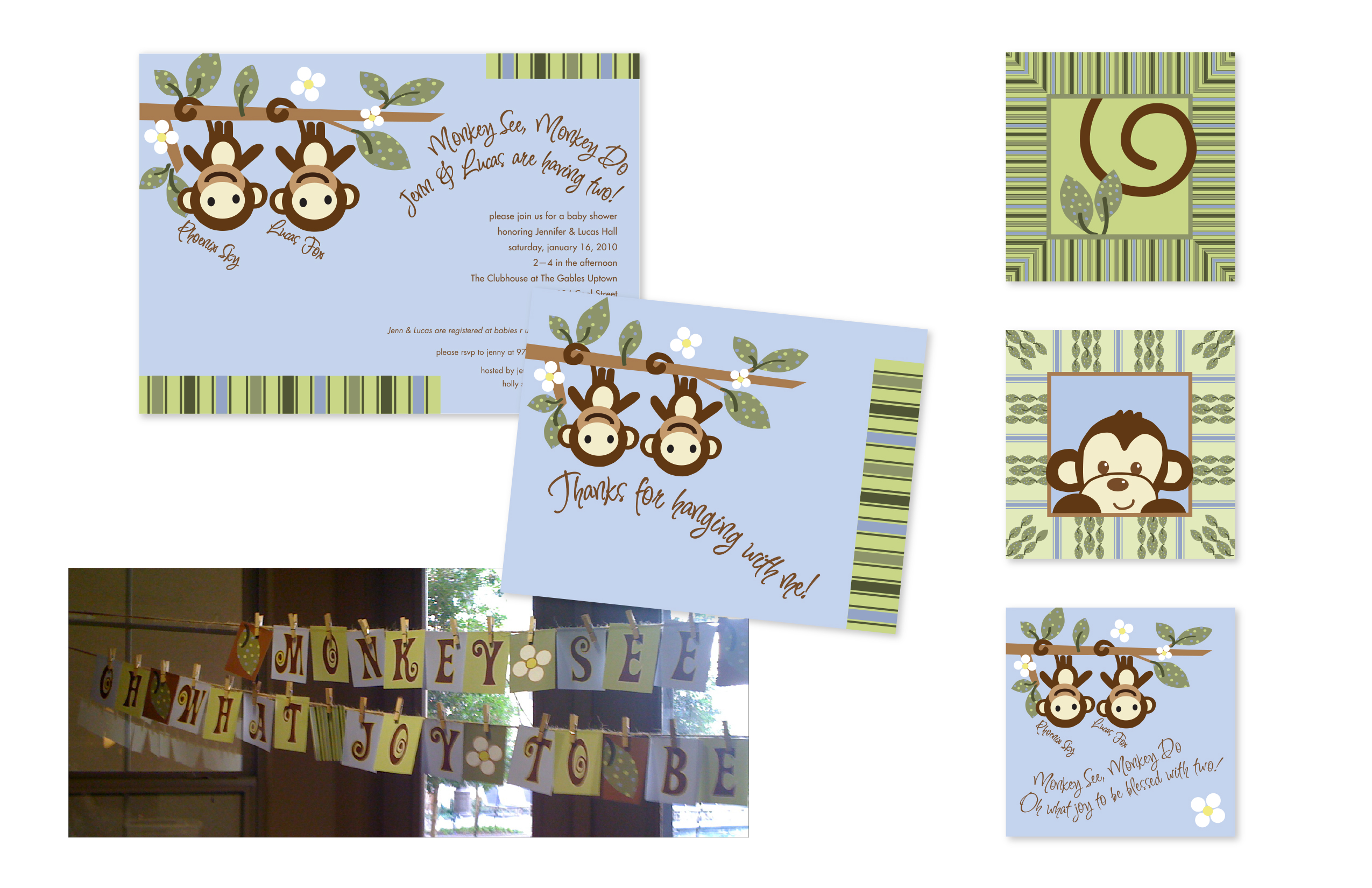 Baby Shower: bespoke invitation, thank you notes, custom wall decorations & banner