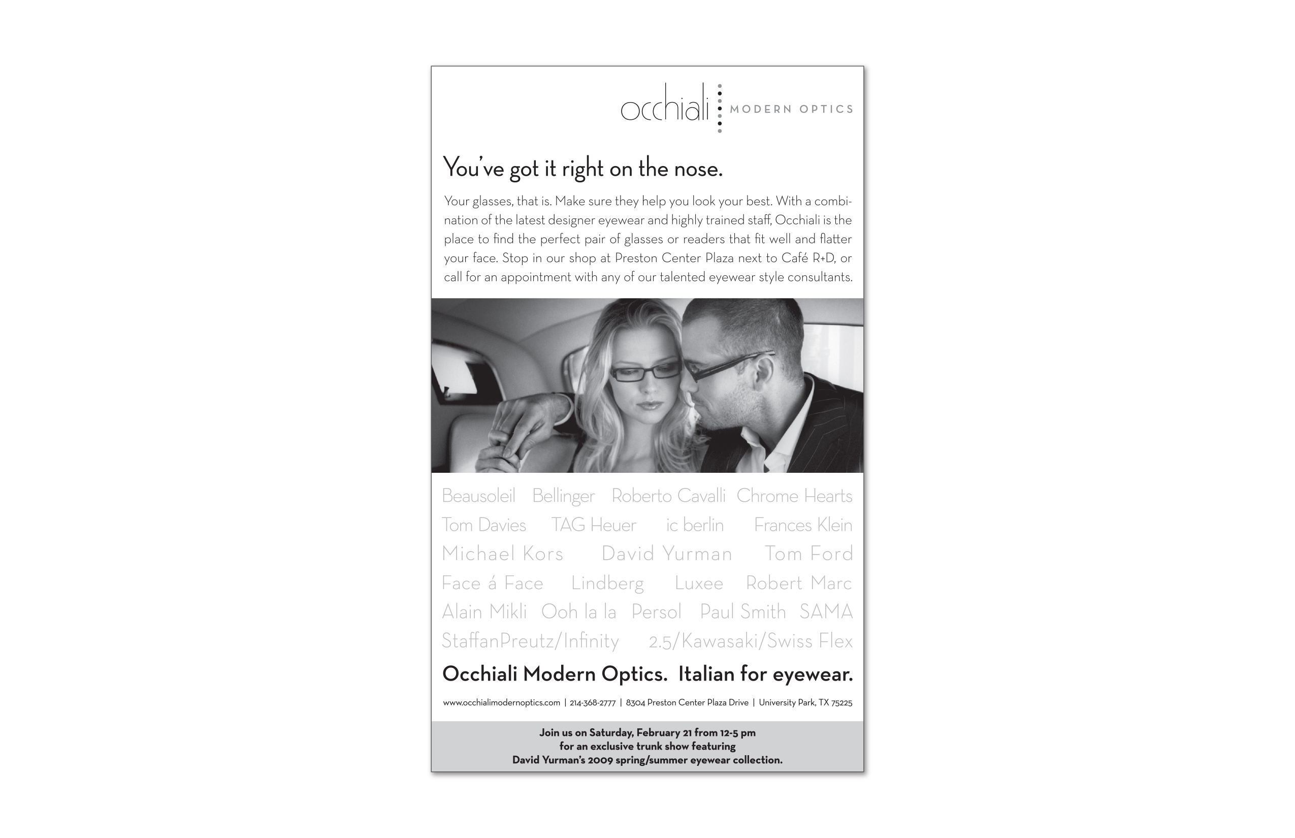 Occhiali Modern Optics: print advertising & event invitation postcard